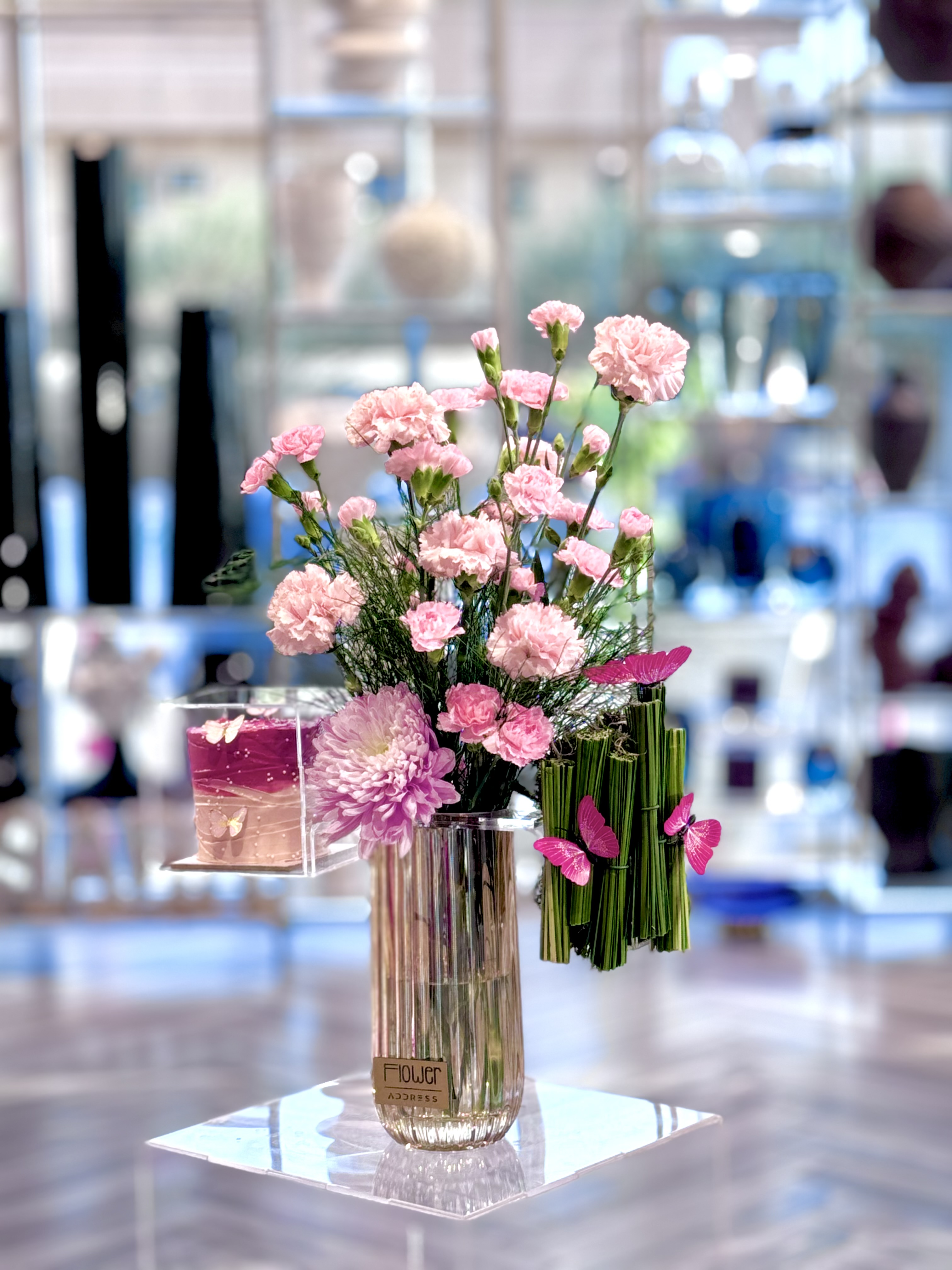 فازة السيراميك مع الفراشه المتحركة والكيك