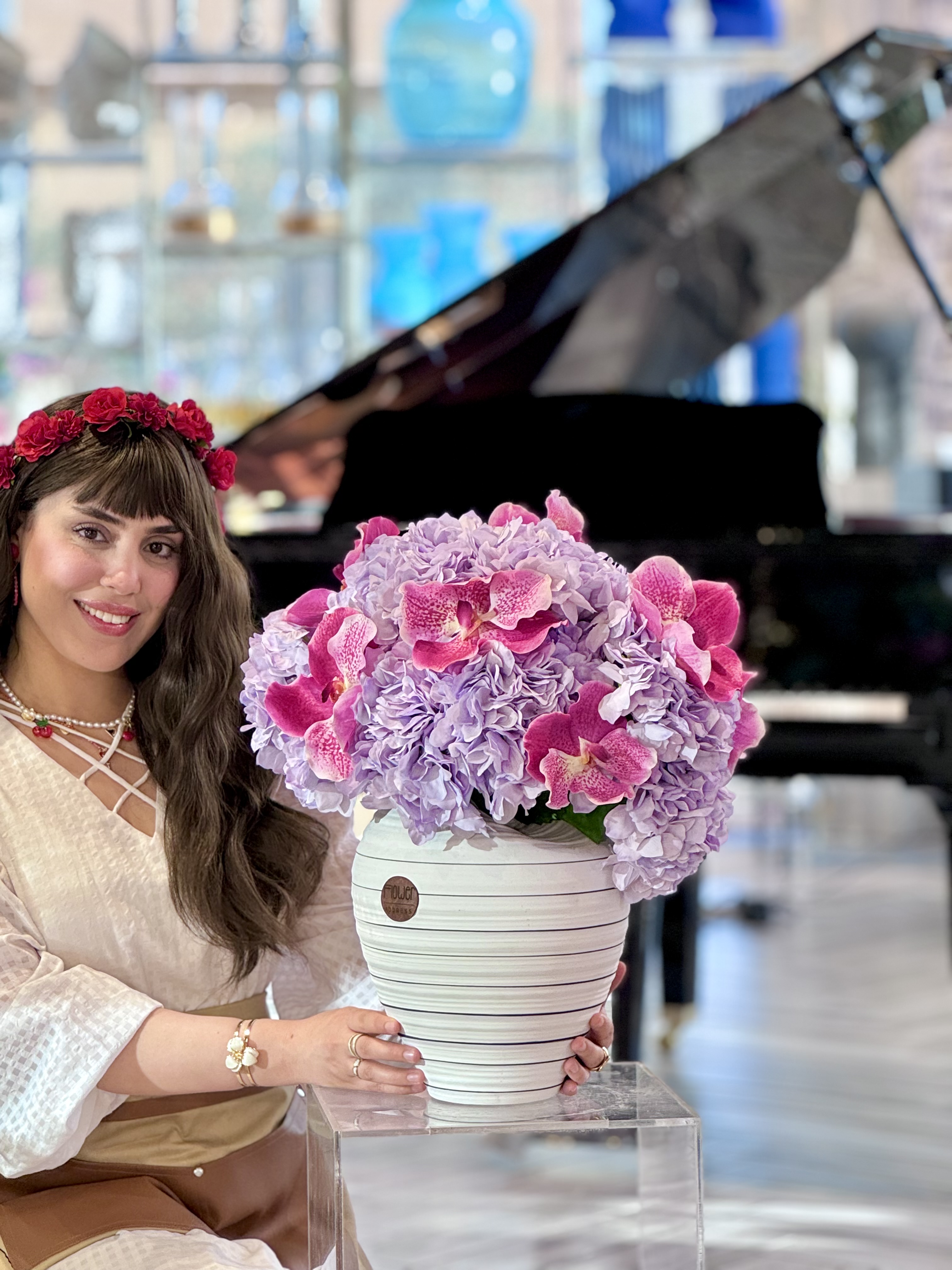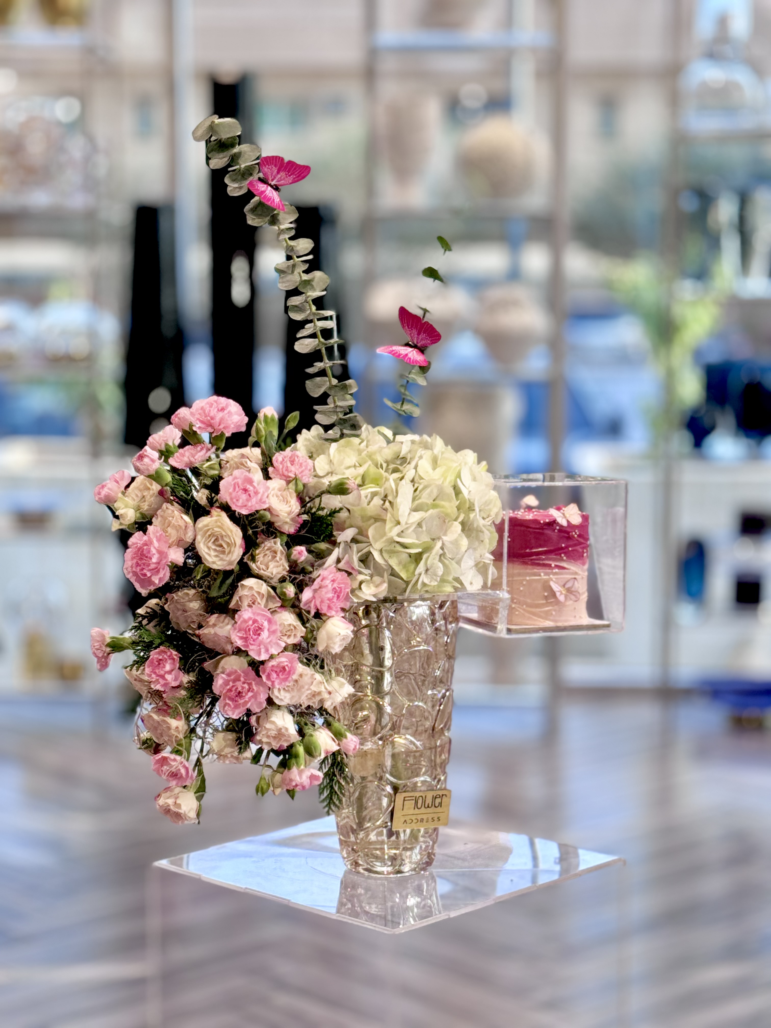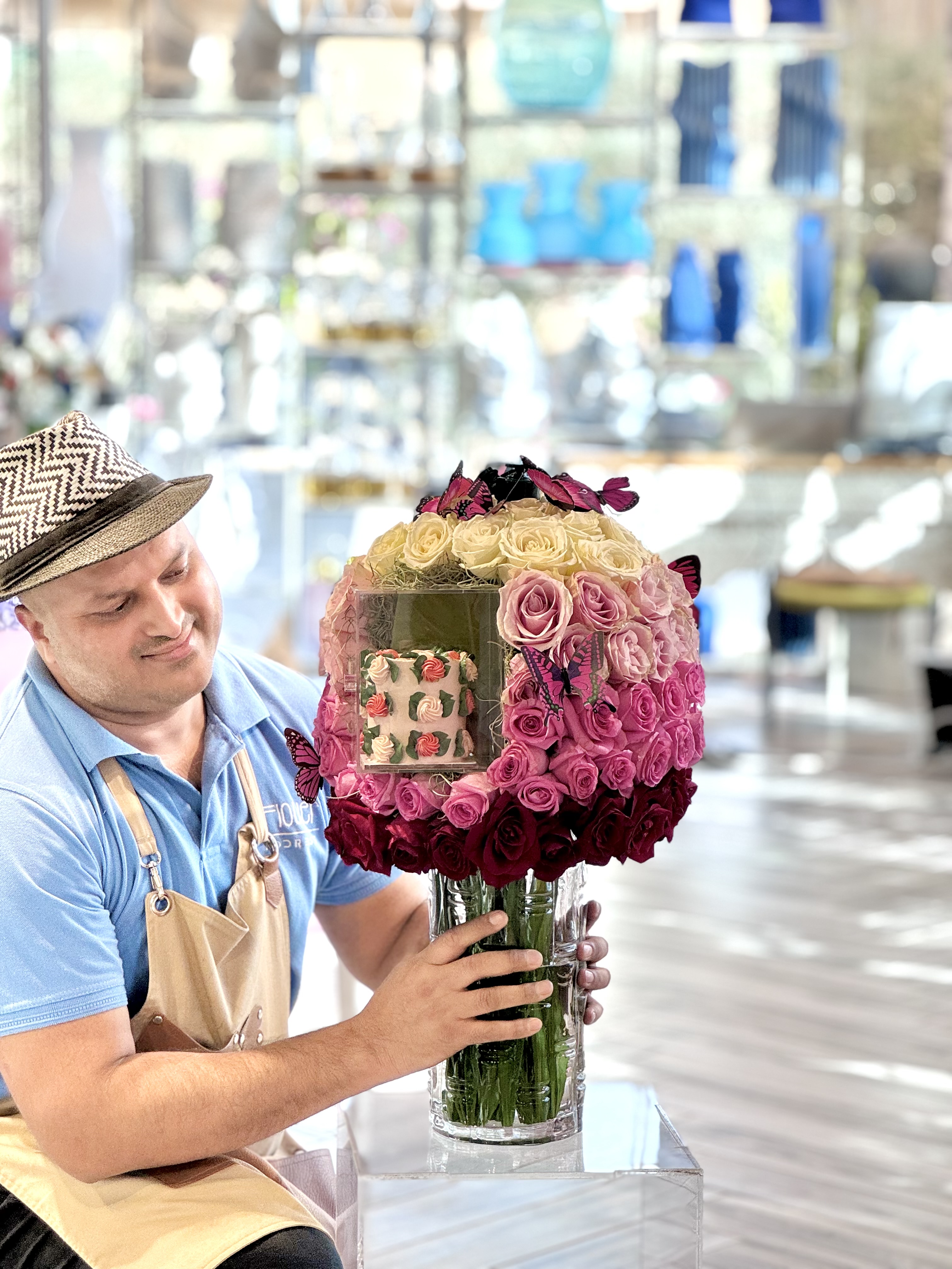 فازة السيراميك مع الفراشه المتحركة والكيك