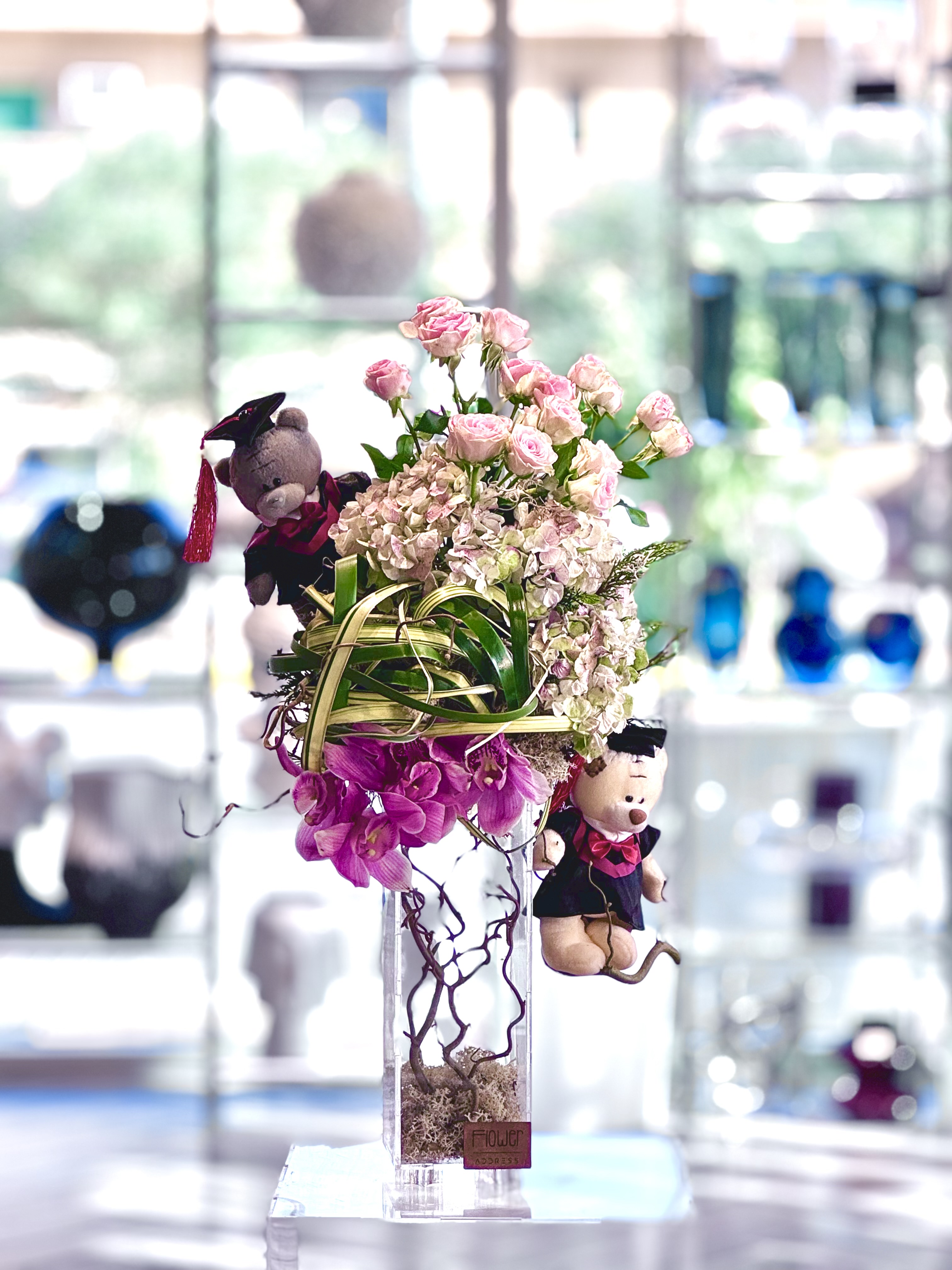تنسيق تخرج بالاسم ورد صناعي