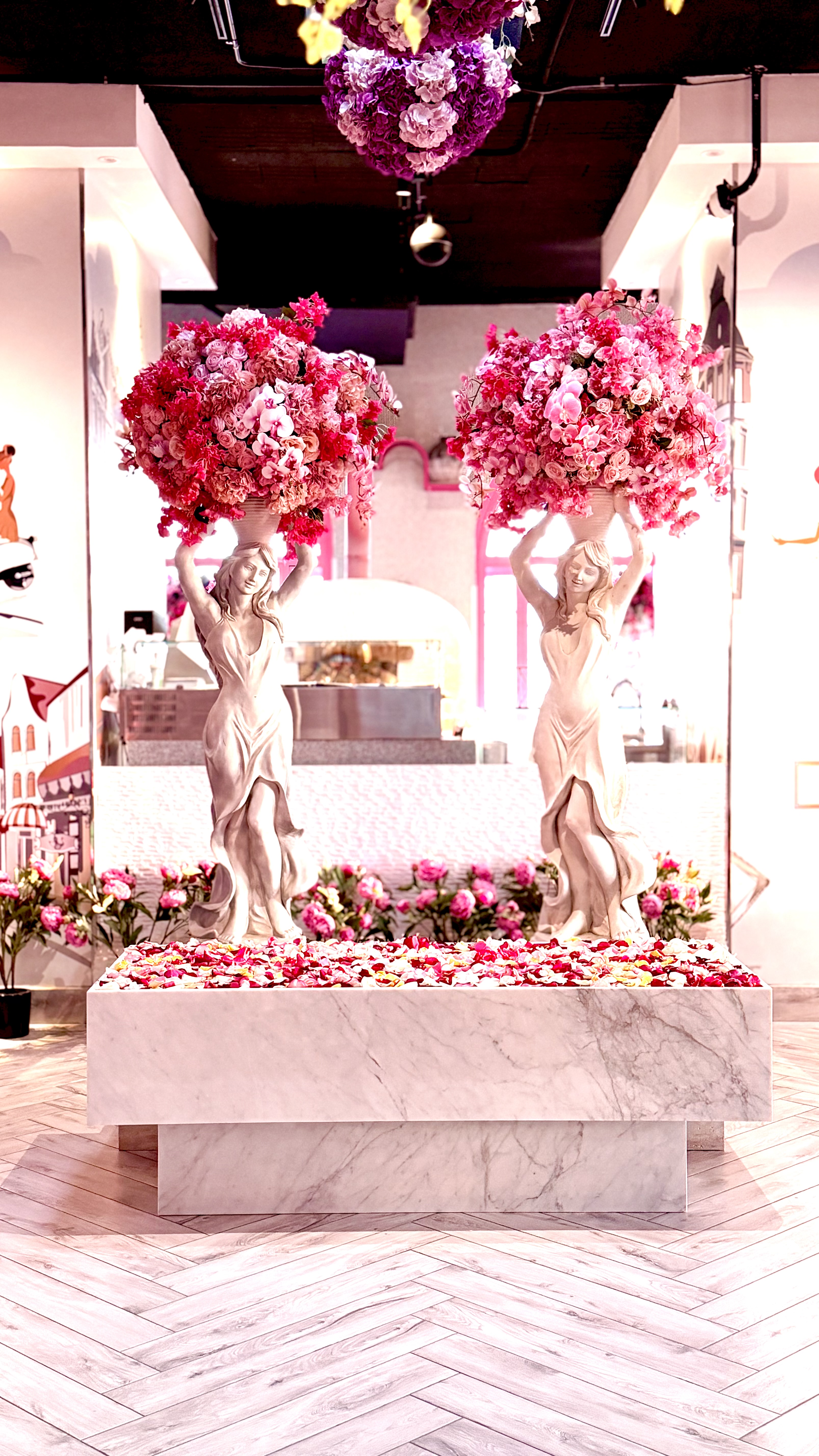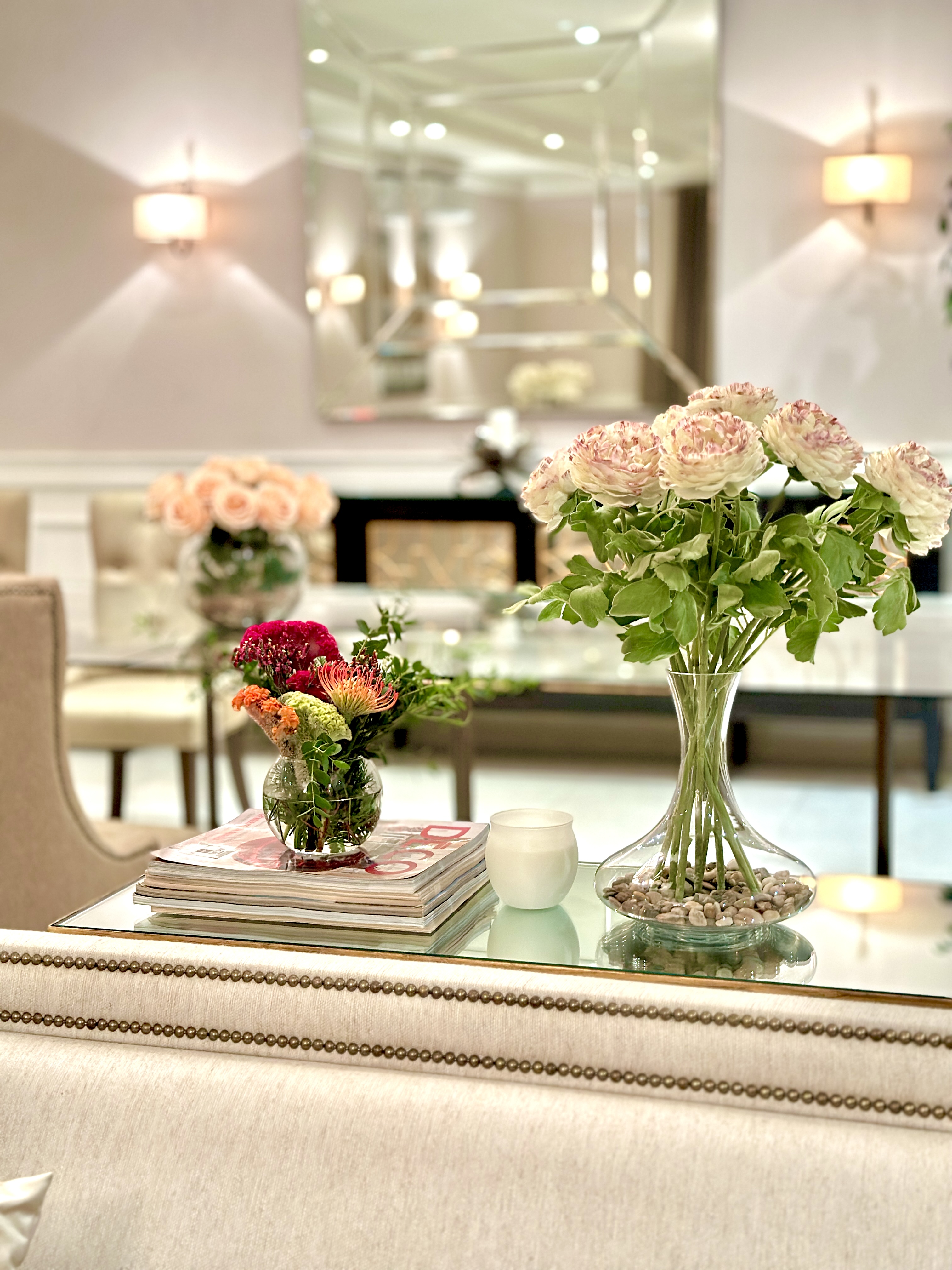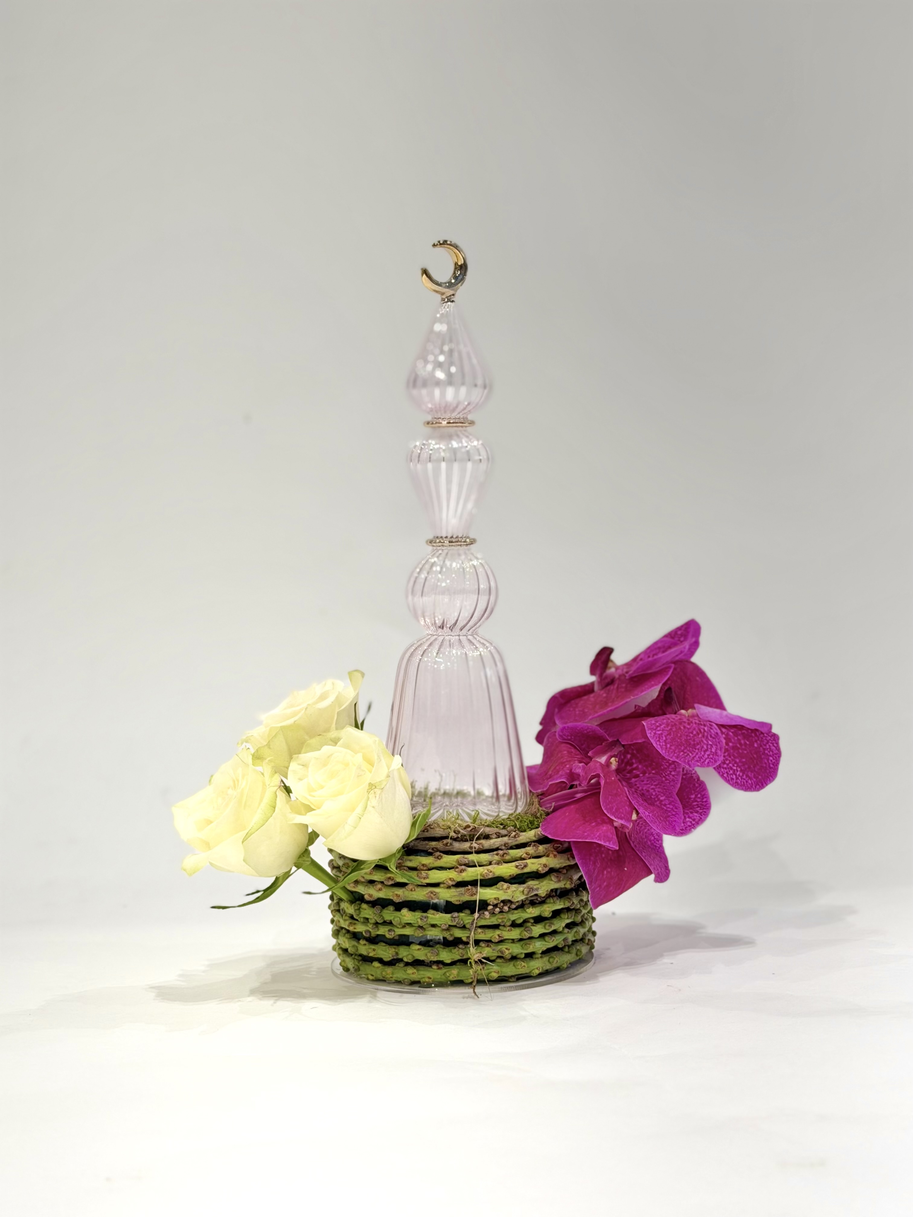 تنسيق المأذنة الزجاج مع الورد